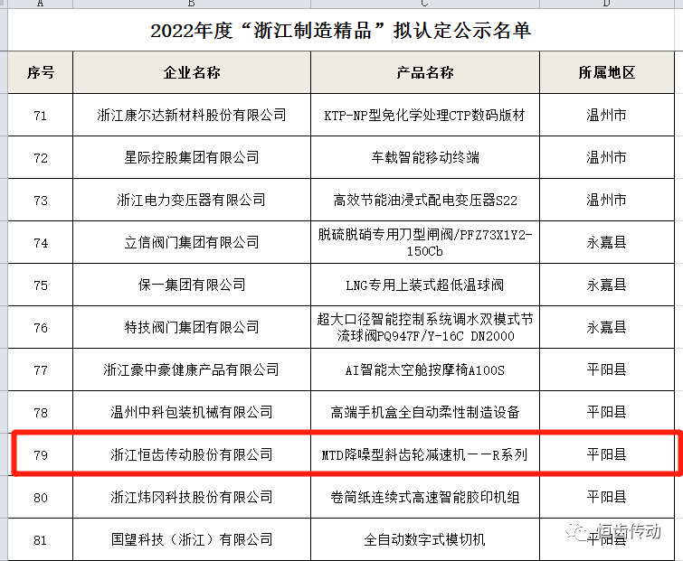 喜訊!浙江恒齒入選2022年度“浙江制造精品”名單
