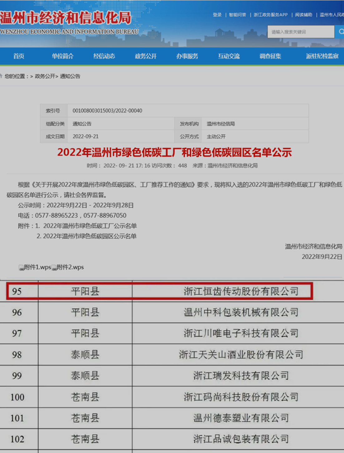 近日,溫州市經(jīng)信局公布了溫州市綠色工廠名單,浙江恒齒傳動股份有限公司(恒齒傳動),成功入選成為市級“綠色工廠”,這是恒齒傳動深入踐行新發(fā)展理念,加快推進工業(yè)綠色發(fā)展結出的喜人成果,標志著恒齒傳動市級綠色工廠創(chuàng)建,實現(xiàn)了“零突破”。